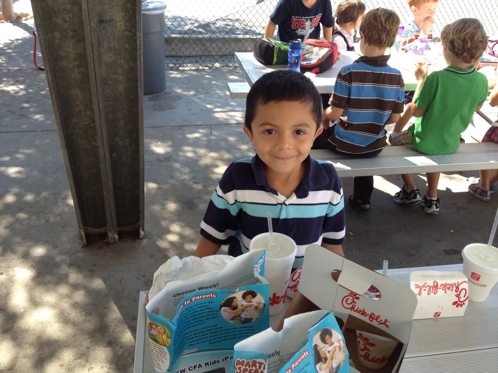 My Rocket! I had lunch with the boys today. Chick-fil-a was in order. Nuggets. Waffle Fries. Lemonade.