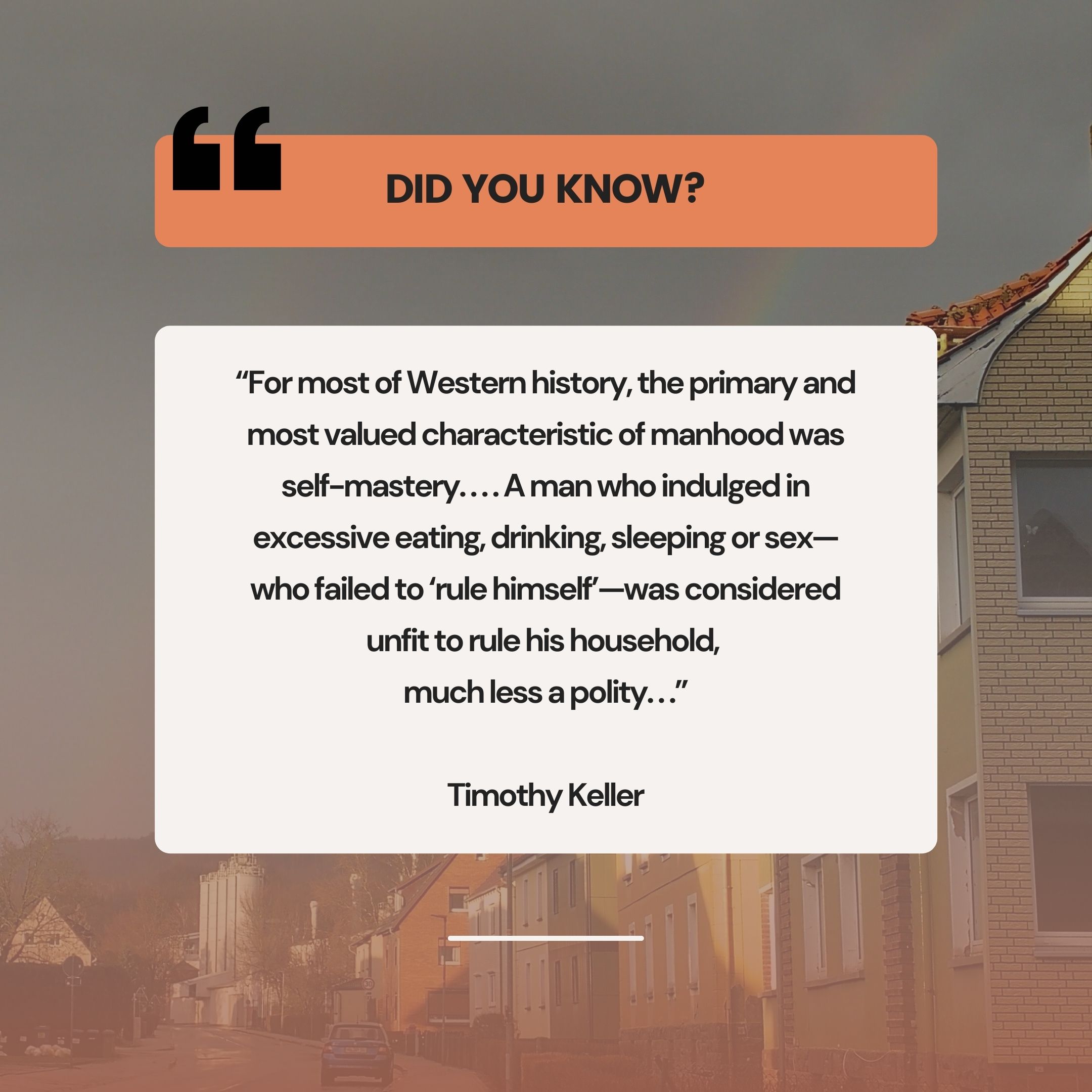 I think I’m a hard ass because I immediately think of how much culture sucks at self-mastery. Look at the scandals, the shootings, and the overt addiction to consumerism (in many shapes and forms). Men are being released into society who have not learned to rule themselves, let alone “rule” others.